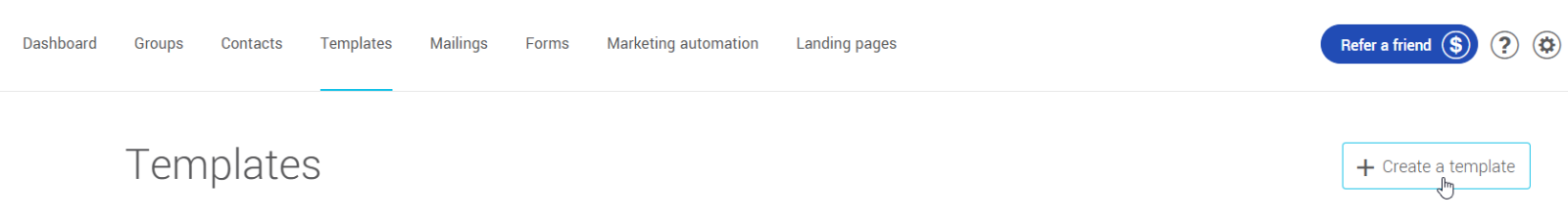 To get started, in the menu, click on + New Template or use the Create a Template shortcut from the left-hand menu.